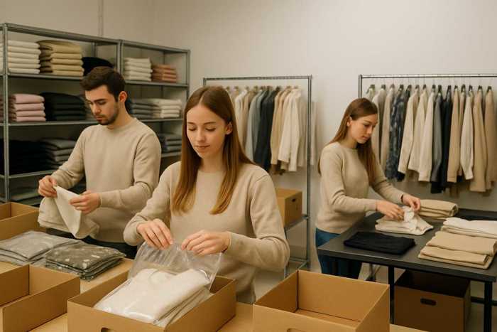 • - ტანსაცმლის შეფუთვა და დახარისხება;