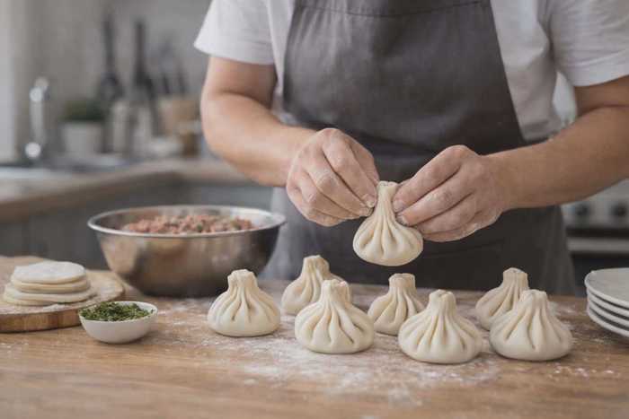 ხინკლის სრულად მომზადების პროცესი (ცომი, შიგთავსი, მოხვევა და მოხარშვა)