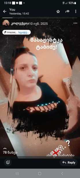 მაქვს მასაჟისტის სერთიფიკატი და ექიმის დიპლომი, გავაკეთებ ჰიგიენურ, სარელაქსაციო, სპორტულ და ანტიცელულიტურ მასაჟს ბინაზე გამოძახებით